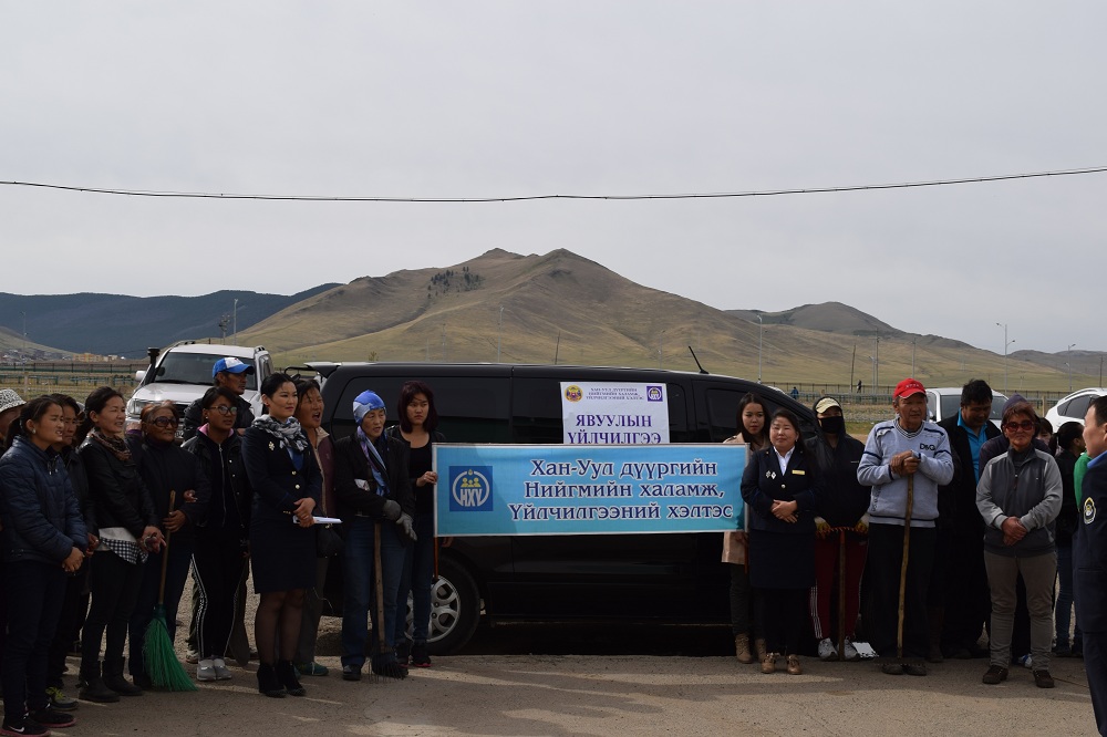Хан-Уул дүүргийн Нийгмийн халамж, үйлчилгээний хэлтэс иргэдийн санаачлага дээр тулгуурлан хүнсний эрхийн бичгийн үйлчилгээндхамрагдаж байгаа нийгмийн халамжийн зорилтот бүлгийн иргэдийг сайн дурын нийгмийн үйлчилгээнд хамрууллаа. Уг ажлыг хүрээнд хүнсний эрхийн бичгийн үйлчилгээнд хамрагдаж байгаа 199 иргэн нийгмийн сайн сайхны төлөө ажиласан бөгөөд хийсэн ажлаас дурдвал 1,2,3,11-р хорооны 25 иргэн Зайсангийн гүүр хавийн Туул голын 2 тал, 4,5,6,7,8-р хорооны 70 иргэн Яармагийн Туулын гүүрнээс хуучнаар Нисэхийн цагаан хаалга хүртлэх замын 2 тал, 9,10,16-р хорооны 40 иргэн Нисэхийн цагаан хаалганаас Морингийн даваа хүртлэх замын 2 тал, 12-р хорооны 21 иргэн хорооны нутаг дэвсгэрийн нийтийн эзэмшлийн талбай, 13-р хорооны 23 иргэн хорооны төв замын урд талын нийтийн эзэмшлийн талбайн хог буюу нийтдээ 1200 га талбайн хогийг цэвэрлэж, 14-р хорооны 20 иргэн хорооны нутаг дэвсгэрийн шинээр байгуулагдаж байгаа хөлбөмбөгийн талбайг тохижуулах ажлыг тус тус хийсэн байна.