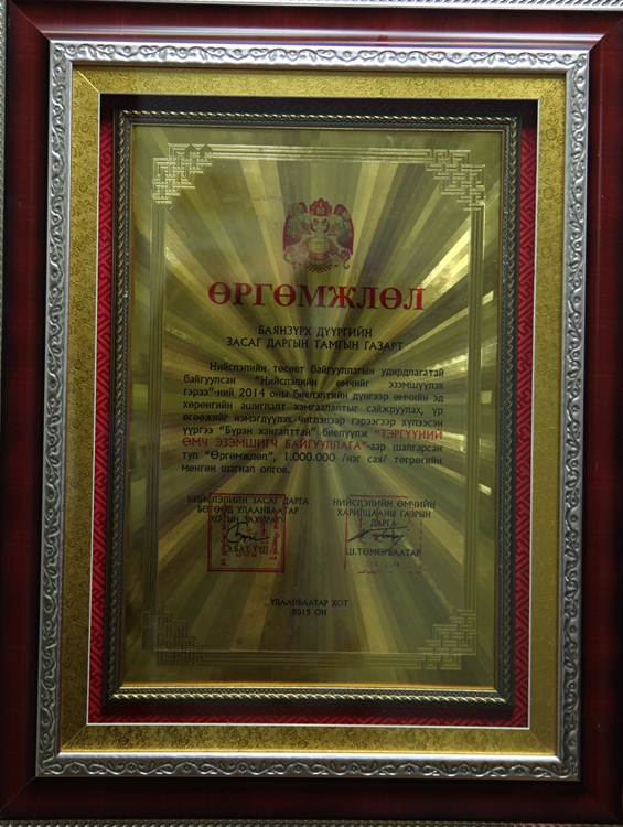 Мөн Монгол-Оросын хамтарсан 3-р сургууль, Хан-Уул дүүргийн Соёлын төв, Яаралтай түргэн тусламжийн төв, 161 дүгээр цэцэрлэг Нийслэлийн Засаг даргын 2015 оны А/441 тоот захирамжаар Өмч эзэмшүүлэх гэрээг хангалттай сайн биелүүлж, тэргүүний өмч эзэмшигч байгууллагаар тодорсон юм.