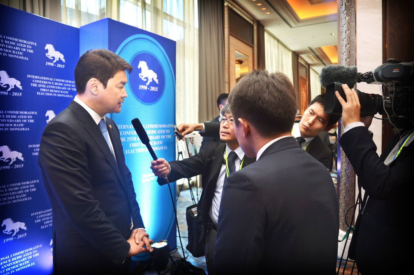 Анхны ардчилсан сонгуулийн 25 жилийн ойн баярын хуралд оролцох үеэрээ Ерөнхий сайд Ч.Сайханбилэг Японы NHK телевизийн сурвалжлах багийнханд ярилцлага өглөө. Тус телевизийн сэтгүүлч, Ардчилсан сонгуулийн 25 жилийн ой болоод хоёр орны харилцааны талаар Ерөнхий сайдаас сонирхсон байна.
