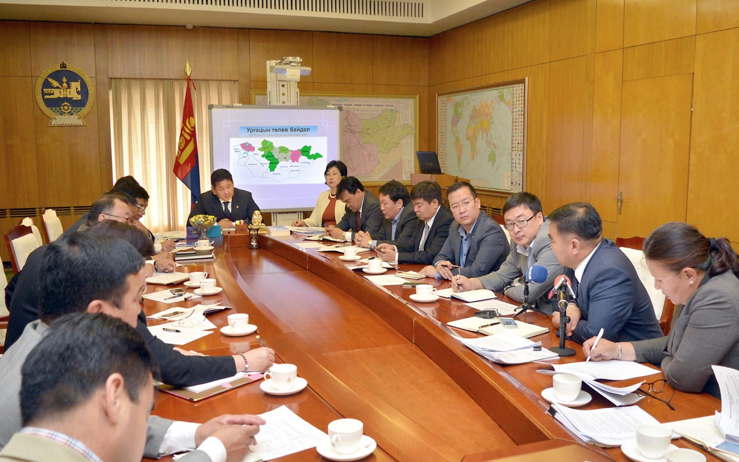 Хүнс, хөдөө аж ахуйн салбарын цаг үеийн байдлын талаар ХХАА-н сайд Р.Бурмаа, цаг агаарын төлөв байдлын талаар Ус цаг уурын хүрээлэнгийн секторын эрхлэгч Ж.Цогт нар мэдээлэл хийлээ.