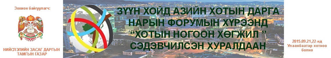 ЗҮҮН ХОЙД АЗИЙН ХОТУУДЫН “ХОТЫН НОГООН ХӨГЖИЛ” ФОРУМЫН ХӨТӨЛБӨР