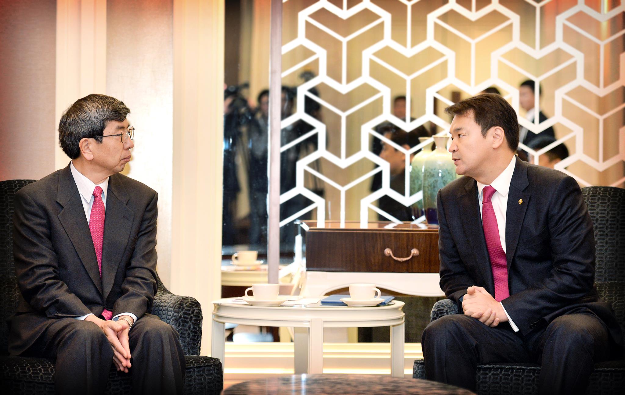 Төв Азийн бүс нутгийн эдийн засгийн хамтын ажиллагааны хөтөлбөрийн хөрөнгө оруулалтын чуулга уулзалтын үеэр Монгол Улсын Ерөнхий сайд Ч.Сайханбилэг Азийн хөгжлийн банкны Ерөнхийлөгч Такехико Накаог хүлээн авч уулзлаа.