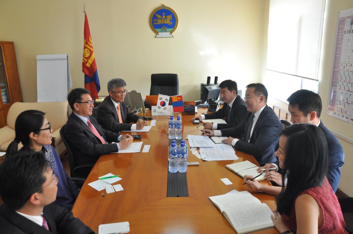 МХЕГ-ын дэд дарга Б.Бат-Эрдэнэ БНСУ-ын Хөдөлмөрийн аюулгүй ажиллагаа, эрүүл ахуйн агентлаг/КОША/-ын Гадаад харилцаа, хамтын ажиллгааны Төвийн захирал И Ин Соб тэргүүтэй төлөөлөгчдийг хүлээн авч уулзлаа. Талууд хоёр байгууллагын хамтын ажиллагаа болон Техникийн хамтын ажиллагааны хэлэлцээрийн хүрээнд байгуулах 2016 онд хамтран ажиллах төлөвлөгөөний төсөл дээр харилцан санал солилцсон юм.