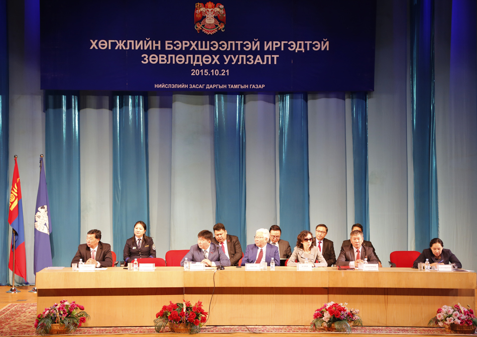 Нийслэлийн удирдлагууд хөгжлийн бэрхшээлтэй иргэдтэй зөвлөлдөх уулзалт хийлээ. Уулзалтад нийслэлийн Засаг дарга бөгөөд Улаанбаатар хотын Захирагч Э.Бат-Үүл, нийслэлийн Засаг даргын орлогч Т.Бат-Эрдэнэ, Ц.Энхцэнгэл. Ц.Буяндалай, Улаанбаатар хотын Ерөнхий менежер бөгөөд Захирагчийн ажлын албаны дарга Б.Бадрал, нийслэлийн Засаг даргын Тамгын газрын дарга Ё.Гэрэлчулуун, нийслэлийн харьяа газар, агентлаг, дүүргийн удирдлагууд, Хөгжлийн бэрхшээлтэй иргэдийн холбоо, Хараагүйчүүдийн үндэсний холбоо, Тэргэнцэртэй иргэдийн үндэсний холбоо, хөгжлийн бэрхшээлтэй 1000 гаруй иргэн оролцож, санал солилцов.