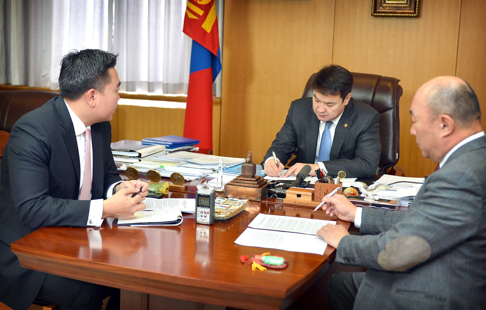 Тус уулзалтад “Эрдэнэс Монгол” ХХК-ийн Гүйцэтгэх захирал Б.Бямбасайхан, “Эрдэнэс Оюу Толгой” ХХК-ийн Гүйцэтгэх захирал Д.Ганболд нар оролцож Гүний уурхайн бүтээн байгуулалт, санхүүжилтийн төлөвлөгөөний хэрэгжилтийн явц болон цаг үеийн чанартай холбогдох зарим гүйцэтгэлийн талаар танилцуулав. Үүнд,