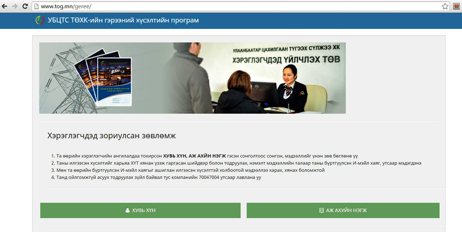 Өмнө нь иргэд гэрээ байгуулахын тулд шаардлагатай мэдээлэл авах, материалаа зөв бүрдүүлсэн эсэхээ асууж лавлахаар Хэрэглэгчдэд үйлчлэх төв рүү хоёроос доошгүй удаа очдог байсан. Хамгийн олон хэрэглэгчтэй Баянзүрх хэрэглэгчдэд үйлчлэх төв гэхэд л өдөрт 50 орчим иргэн, аж ахуйн нэгжтэй цахилгаанаар хангах гэрээ байгуулдаг бөгөөд нэг үйлчлүүлэгчийн материалыг хүлээн авч судлаад гэрээ байгуулахад 30-аас доошгүй минут зарцуулдаг.