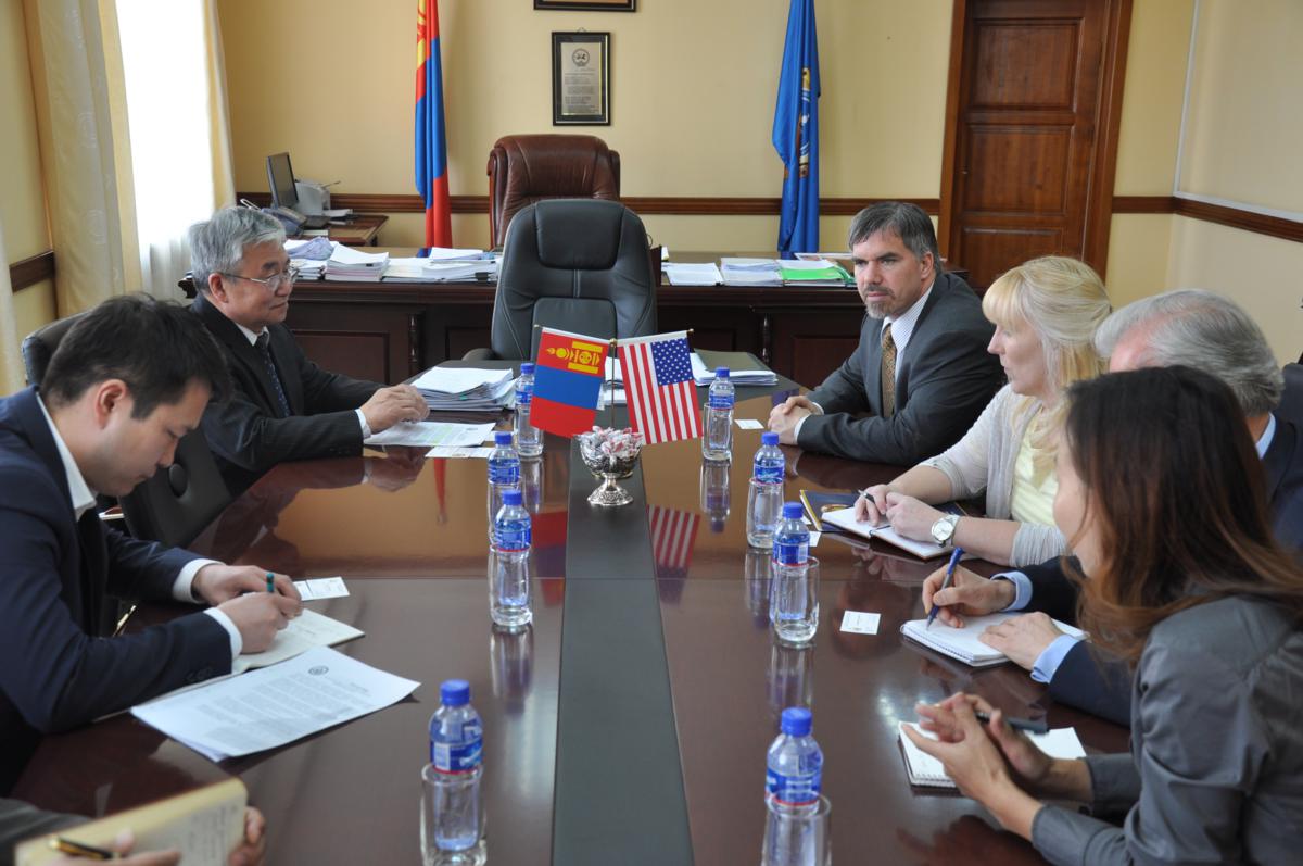 АНУ-ын Төрийн департаментаас Монгол Улсын Засгийн газартай хамтран 2011 оноос хойш “Экспортын хяналт, түүнтэй холбоотой хилийн хамгаалалт”/EXBS/ хөтөлбөрийг дэмжин хэрэгжүүлж байгаа билээ. Энэхүү хөтөлбөрийн хууль эрхзүйн зөвлөх Володимир Сульзински, АНУ Төрийн департаментын Экспортын хяналтын хамтын ажиллагааны албаны гадаад хамтын ажиллагааны ажилтан Карен Чейсон, АНУ–аас Монгол Улсад суугаа элчин сайдын яамны Эдийн засгийн албаны дарга Жон Мак Данел нар өнөөдөр МХЕГ-ын дарга Ц.Шаравдоржтой уулзсан юм. Хоёр тал хөтөлбөрийн хүрээнд цаашид хэрхэн хамтран ажиллах талаар санал солилцлоо.