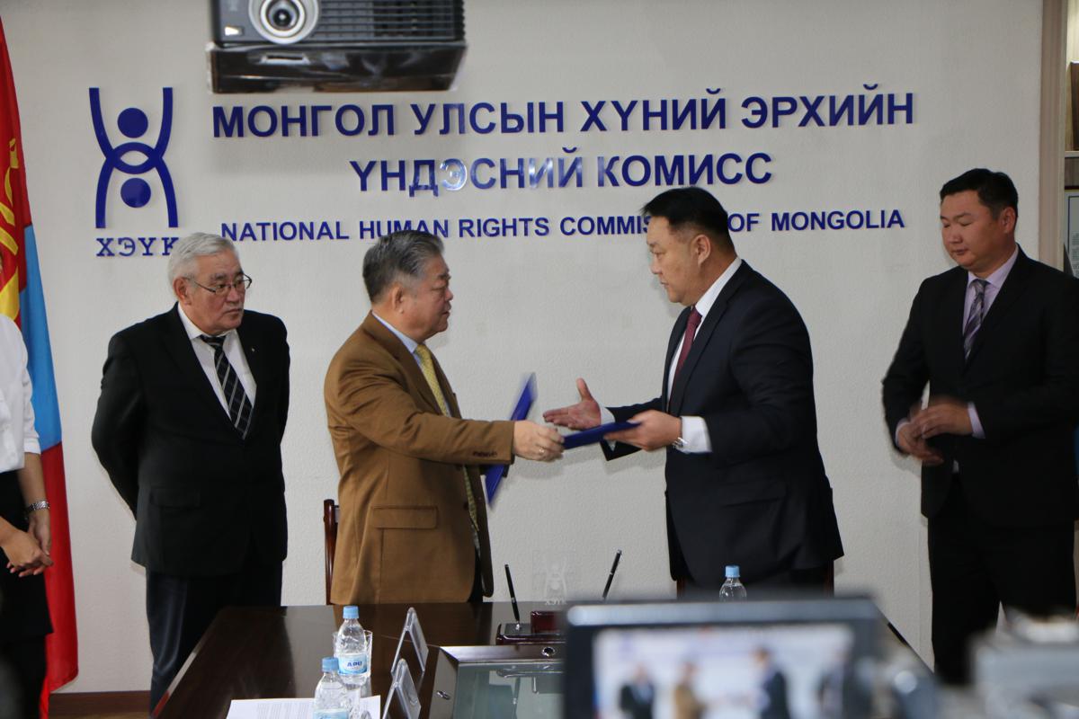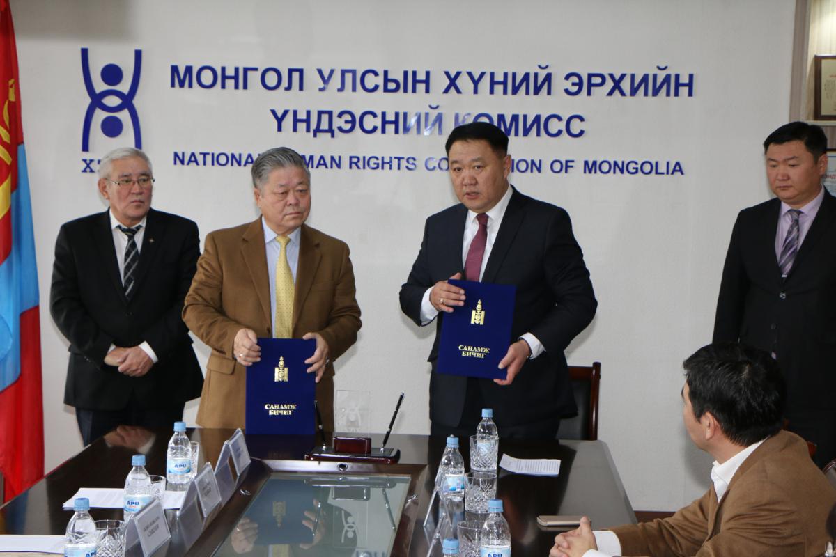 Монгол Улсын Хүний эрхийн үндэсний комиссын дарга Ж.Бямбадорж, Мэргэжлийн хяналтын ерөнхий газрын дарга Н.Цагаанхүү нар хамтран ажиллах Санамж бичигт гарын үсэг зурлаа.
