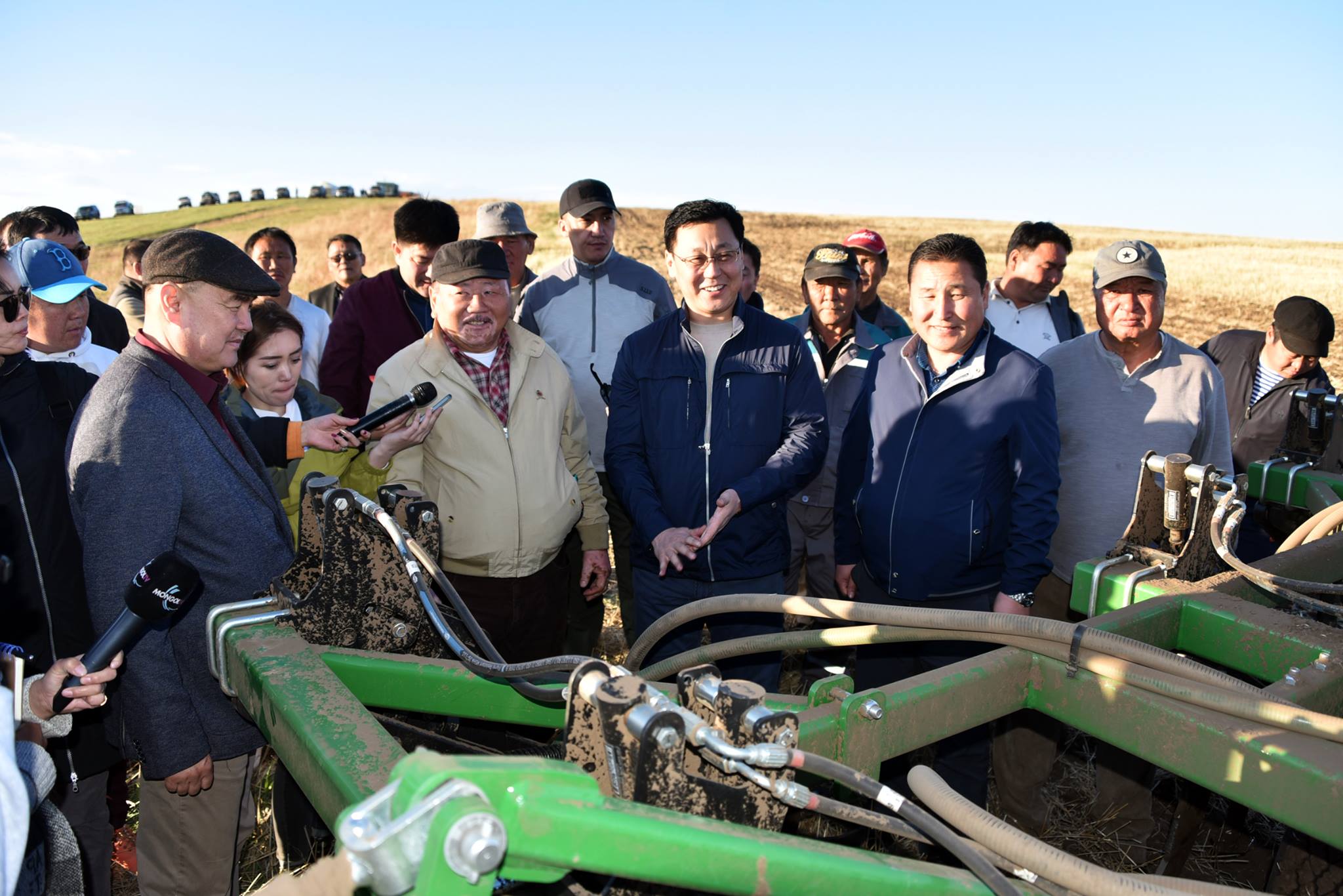 Ерөнхий сайд Ж.Эрдэнэбат дараа нь Дархан-Уул аймгийн Хонгор сумын “Газар өгөөж” ХХК-ийн хаврын тариалалтын явцтай танилцлаа.