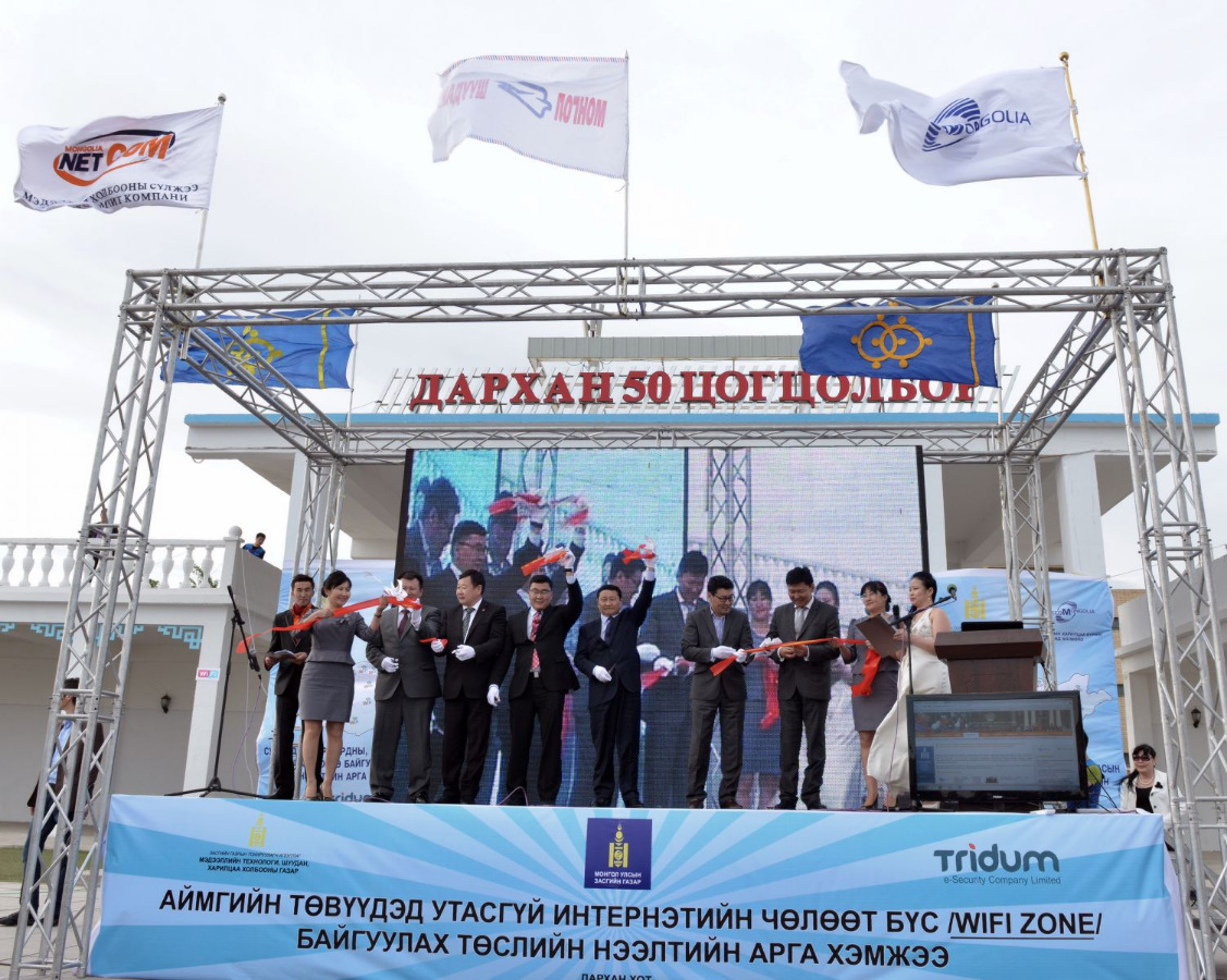 Монгол Улсын Засгийн газраас хэрэгжүүлж байгаа “Өндөр хурдны өргөн зурвасын сүлжээ үндэсний хөтөлбөр”-ийн хүрээнд “Аймгийн төвүүдэд утасгүй интернетийн чөлөөт бүс байгуулах” төслийг хэрэгжүүлэх ажлын нээлт өнөөдөр Дархан-Уул аймгийн “Дархан 50” цогцолборт боллоо. Нээлтийн ажиллагаанд Монгол Улсын Ерөнхий сайд Н.Алтанхуяг, МШТХХГ-ын дарга Ц.Жадамбаа, Дархан-Уул аймгийн Засаг дарга С.Насанбат болон албаны хүмүүс оролцсон юм. Энэ өдөр Сэлэнгэ, Булган, Архангай, Сүхбаатар зэрэг 9 аймгийн төвд утасгүй интернетийн бүсийг байгуулж, дээрх аймгуудтай шууд холбогдсон юм. “Дархан 50” цогцолборын wi fi нь 500 метрийн радиуст нэгэн зэрэг 100 хүн холбогдох боломжтой. 5 минутын дараагаар 101 дэх хүн холбогдохоор дэвшилтэт технологийг ашигласан гэдгийг МШТХХГ-ын дарга Ц.Жадамбаа онцоллоо. Төслийн хүрээнд 6 дугаар сардаа багтаан 21 аймгийн төвийг үнэгүй, утасгүй интернетийн бүстэй болгох зорилт тавин ажиллаж байгаагаа ч дуулгасан.