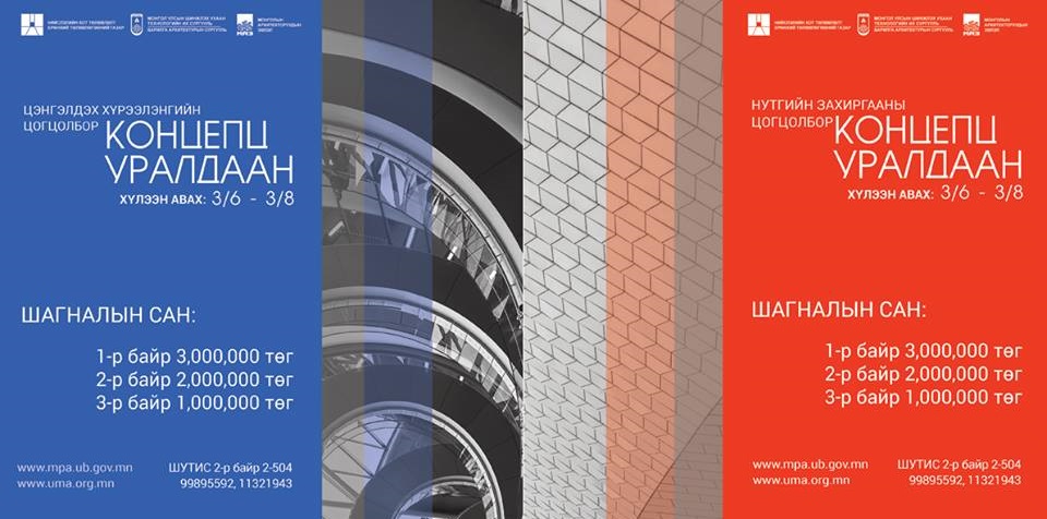 Дээрх хоёр уралдаанд мэргэжлийн сургуулийн оюутнууд болон сургуулиа төгсөөд 5 хүртэл жил ажиллаж буй залуу архитектор оролцох боломжтой аж. Уралдаан тус бүрээр шилдгүүдийг шалгаруулж гурван байр эзлүүлж, 1-3 сая төгрөгийн шагнал олгох юм байна.