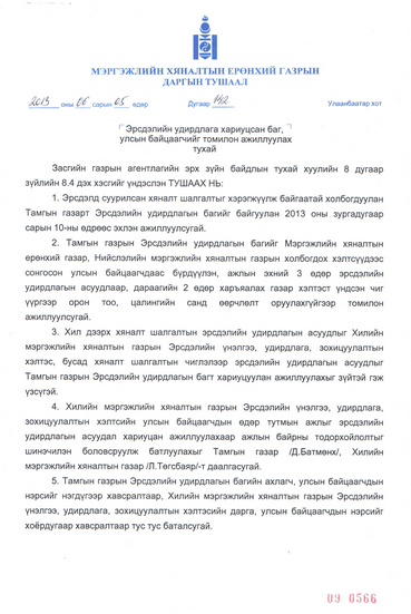 Эрсдэлд суурилсан хяналт шалгалтыг хэрэгжүүлж байгаатай холбогдуулан МХЕГ-т 18 улсын байцаагчийн бүрэлдэхүүнтэй Эрсдэлийн удирдлагын багийг байгуулан 2013 оны зургадугаар сарын 10-ны өдрөөс эхлэн ажиллуулахаар МХЕГ-ын даргын 2013 оны 142 тоот тушаал батлагдлаа.