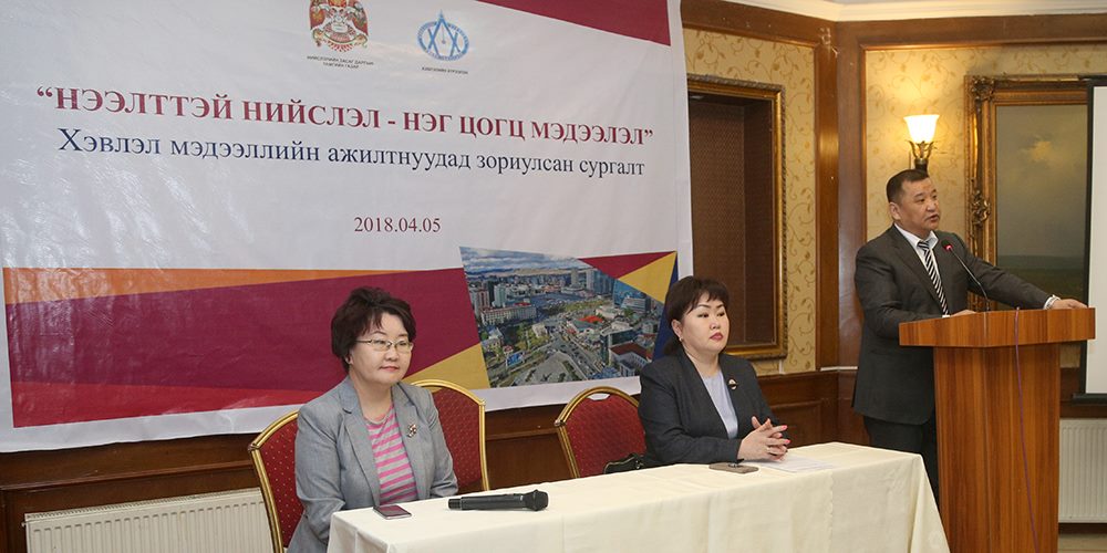 Нийслэлийн Засаг даргын Тамгын газар, Хэвлэлийн хүрээлэнтэй хамтран нийслэлийн нутгийн захиргааны байгууллагуудын хэвлэл мэдээлэл хариуцсан мэргэжилтэн, ажилтнуудад зориулан “Нээлттэй нийслэл-Нэг цогц мэдээлэл” сэдэвт сургалт өнөөдөр зохион байгууллаа.