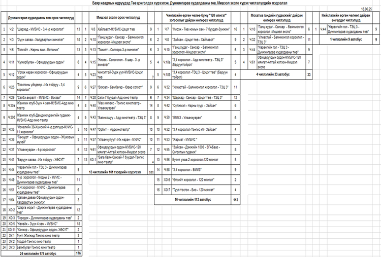 Баяр наадмын өдрүүдэд нийтийн зорчигч тээврийн үйлчилгээ дараах байдлаар зохион байгуулахаар төлөвлөөд байна. Үүнд:
