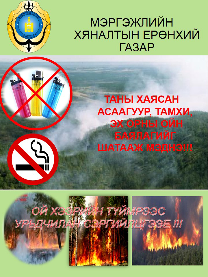 Өнгөрсөн онд манай улсад 4373 удаа аюулт үзэгдэл, осол тохиолдож 200 гаруй хүн амь насаа алдан, 82 тэрбум төгрөгийн шууд хохирол учирсан байна. Нийт аюулт үзэгдэл, ослын 90 хувь нь гал түймрийн улмаас гарсан бөгөөд дийлэнх нь хүний буруутай үйл ажиллагаа, хариуцлагагүй байдлаас болжээ. Галын аюулаас болгоомжилъё.