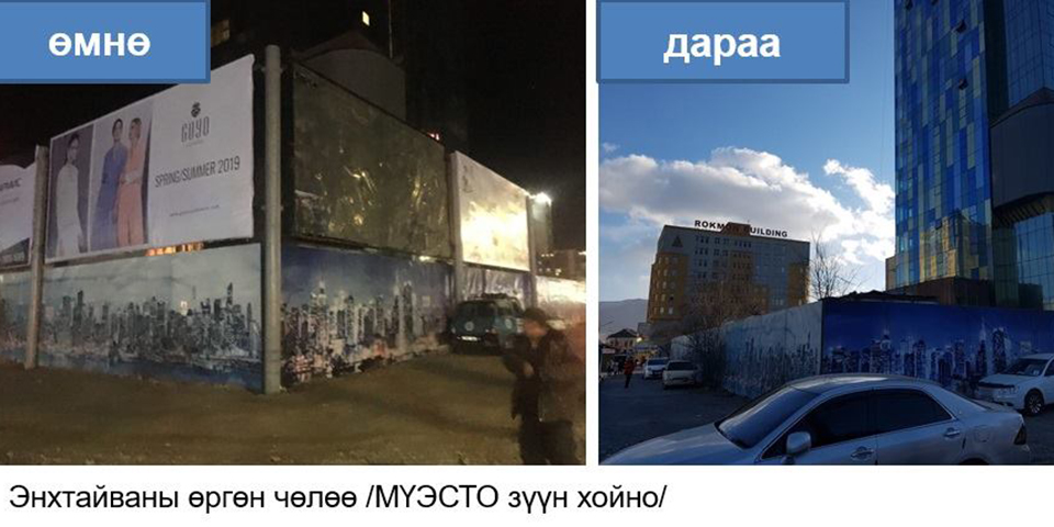 Нийслэлийн Засаг даргын 2019 оны дөрөвдүгээр сарын 17-ны өдрийн А/322 дугаар захирамжийн дагуу Улаанбаатар хотын Захирагчийн ажлын албанаас зөвшөөрөлгүй байрлуулсан гадна зар сурталчилгааны самбаруудыг албадан буулгаж эхэлсэн.