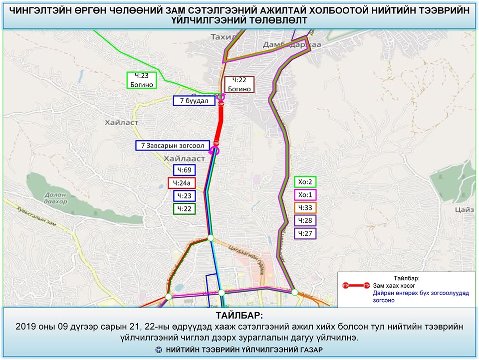 - ХО:2 “Шаргаморьт-Дүнжингарав худалдааны төв” чиглэлүүдийн замналд түр хугацаагаар өөрчлөлт орж байна.