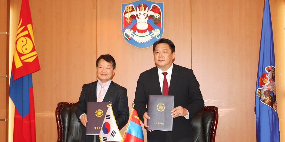 Нийслэлийн Эрүүл мэндийн газрын дарга Л.Төмөрбаатар, БНСУ-ын хойд Чүнчон мужийн Эрүүл мэнд, нийгмийн хамгааллын газрын дарга Шин Кансоб нар өнөөдөр нийслэлийн хүн амд үзүүлэх эмнэлгийн тусламж үйлчилгээ болон эрүүл мэндийн салбарын харилцааг хөгжүүлэхэд хамтран ажиллах зорилгоор харилцан ойлголцлын санамж бичигт гарын үсэг зурлаа.
