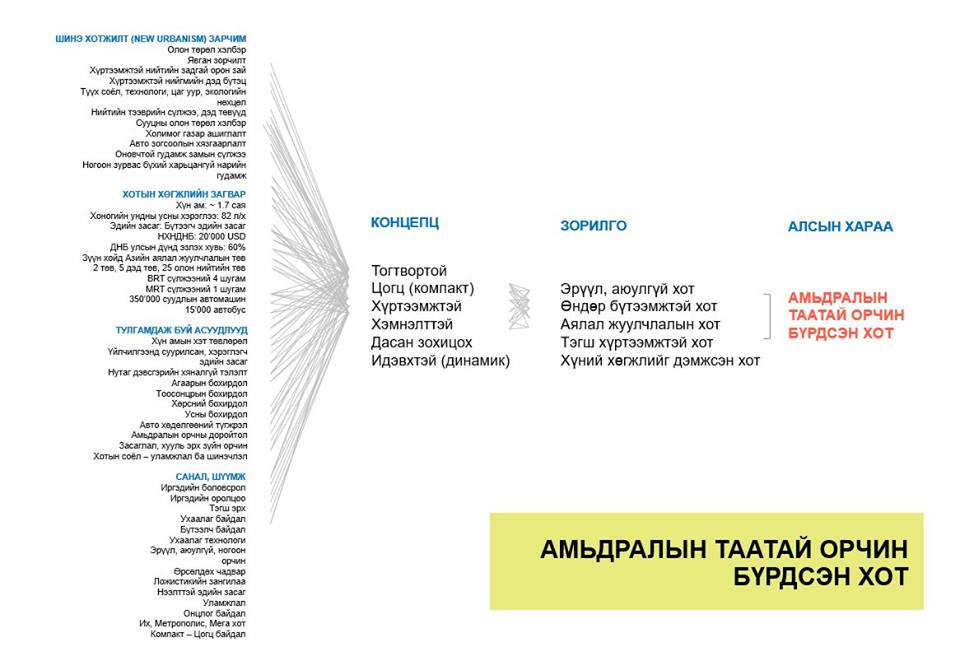 Улаанбаатар хотыг хөгжүүлэх зорилтын хүрээнд “Улаанбаатар хотын 2040 он хүртэлх хөгжлийн ерөнхий төлөвлөгөөний концепц”-ыг боловсруулаад байна.