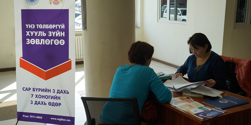 Нийслэлийн Засаг даргын Тамгын газар, Монголын Хуульчдын холбоотой хамтран “Нийслэлийн иргэдийн хууль, эрх зүйн боловсролыг дээшлүүлэх” дэд хөтөлбөрийн хүрээнд сар бүрийн гурав дахь долоо хоногийн Лхагва гарагт иргэдэд хууль, эрх зүйн үнэ төлбөргүй зөвлөгөө өгөх өдөрлөгийг тогтмол зохион байгуулдаг.