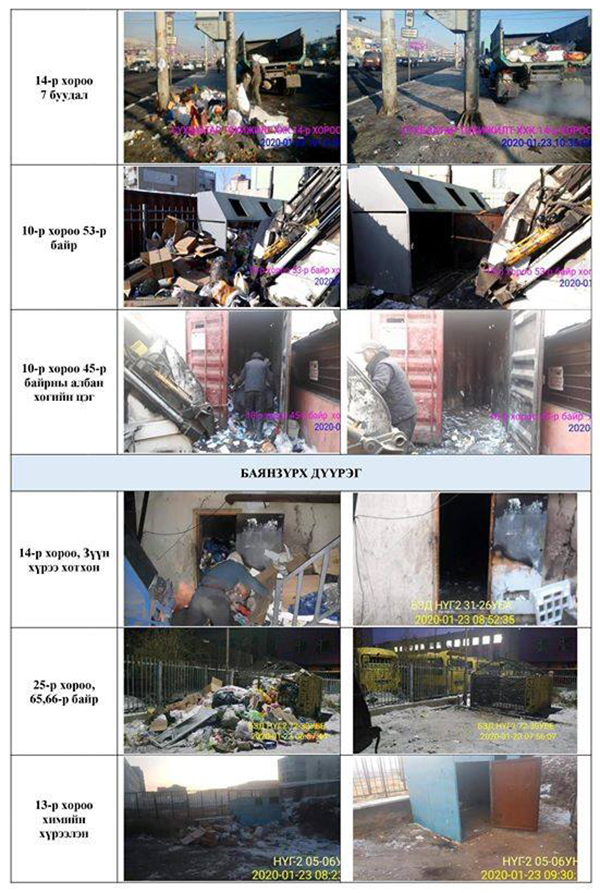 Дүүрэг, хороодын Засаг дарга нар өөрсдийн нутаг дэвсгэр дээрээ одоо үүсээд байгаа хог хаягдал, ачилт хийгдэхгүй удсан хог хаягдлыг ачиж тээвэрлэх ажил гурав дахь өдрөө үргэлжилж байна. Дүүрэг, хороодын мэдээллийг та бүхэн доорх зургаас үзнэ үү.