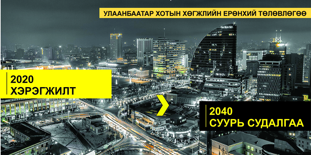 Дараагийн хөгжлийн ерөнхий төлөвлөгөө буюу Улаанбаатар хотын 2040 он хүртэлх хөгжлийн ерөнхий төлөвлөгөөг “Үнэлгээ дүгнэлт, суурьсудалгаа”, “Үзэл баримтлал /концепц/”, “Ерөнхий төлөвлөгөө” гэсэн гурван үе шаттай хийж гүйцэтгэж байна. Эхний үе шат болох: