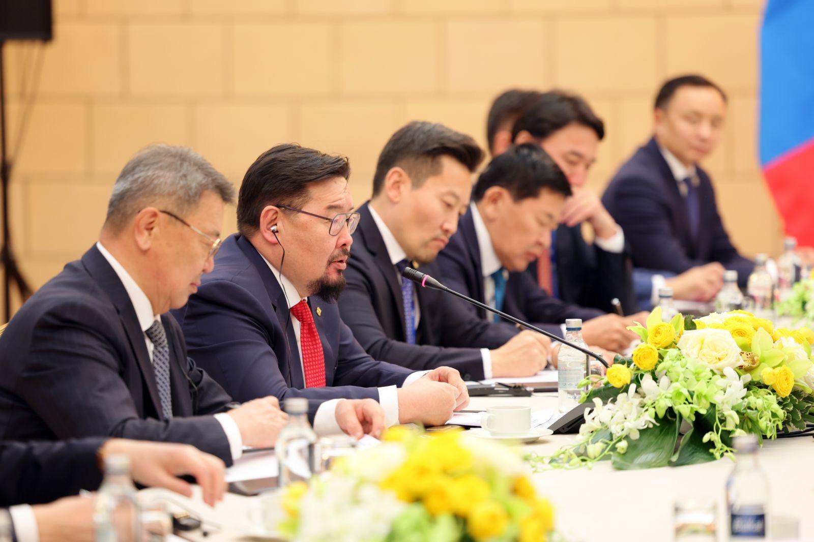 Хоёр улсын хөгжлийн төлөвлөгөө, бүтээн байгуулалтын төлөвлөлтийг харилцан уялдуулахын чухлыг Ерөнхий сайд онцлоод энэ хүрээнд Шивээхүрэн-Сэхээ, Ханги-Мандал, Бичигт-Зүүнхатавч зэрэг боомтын хил дамнасан төмөр замын бүтээн байгуулалтыг үе шаттай урагшлуулахад бэлэн байгааг тодотгов. Түүнчлэн Монгол Улсаас БНХАУ-д экспортлох нүүрсний биет хэмжээг нэмэгдүүлж, 100 сая тоннд хүргэх, хоёр улсын худалдааны бүтцийг төрөлжүүлэх, үүний тулд хөдөө аж ахуйн гаралтай бүтээгдэхүүний хорио цээрийн протоколын тоог нэмэгдүүлэх замаар хоёр талын худалдааны хэмжээг 20 тэрбум ам.долларт хүргэх зорилтыг биелүүлэх санал дэвшүүллээ.