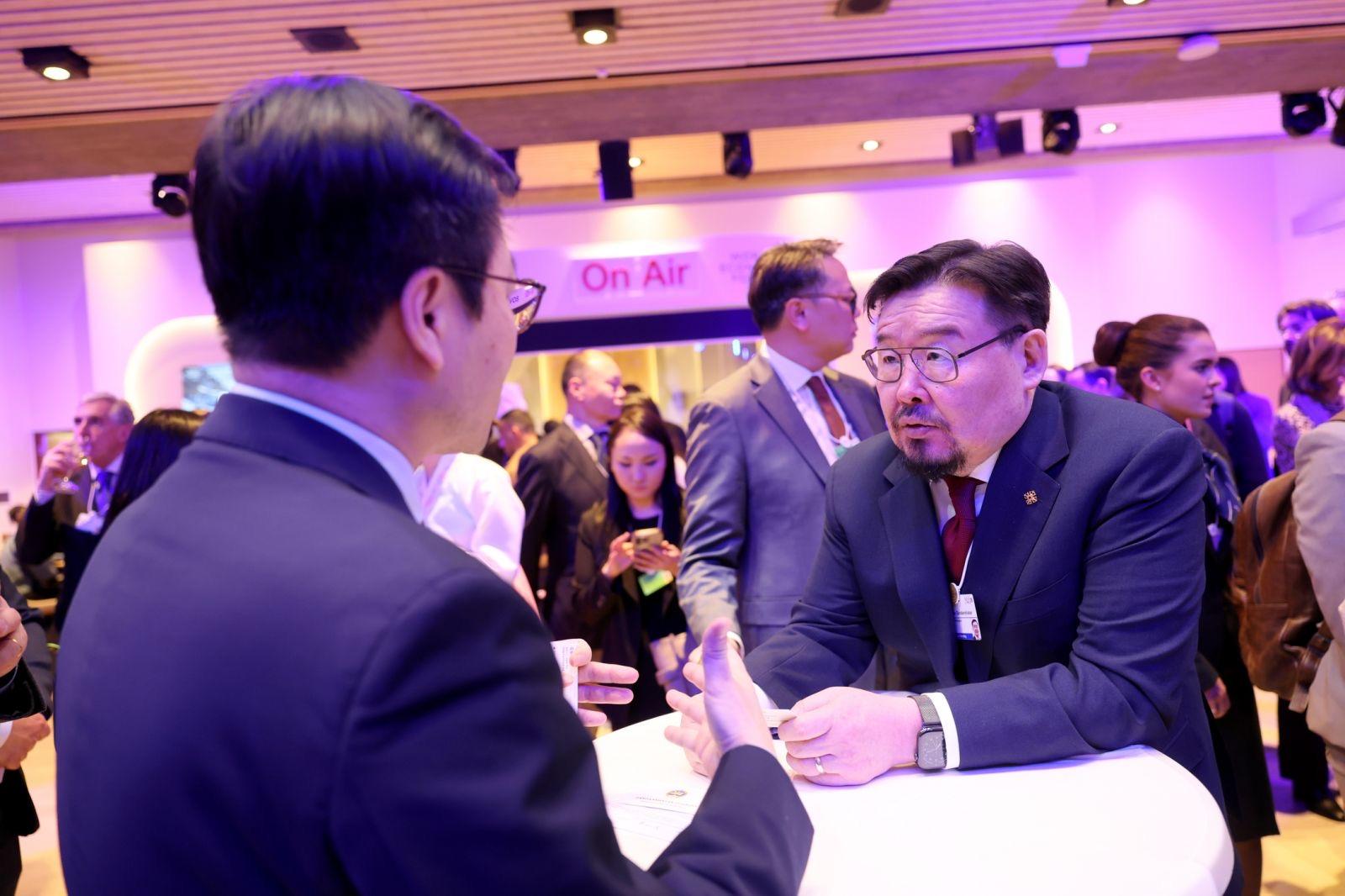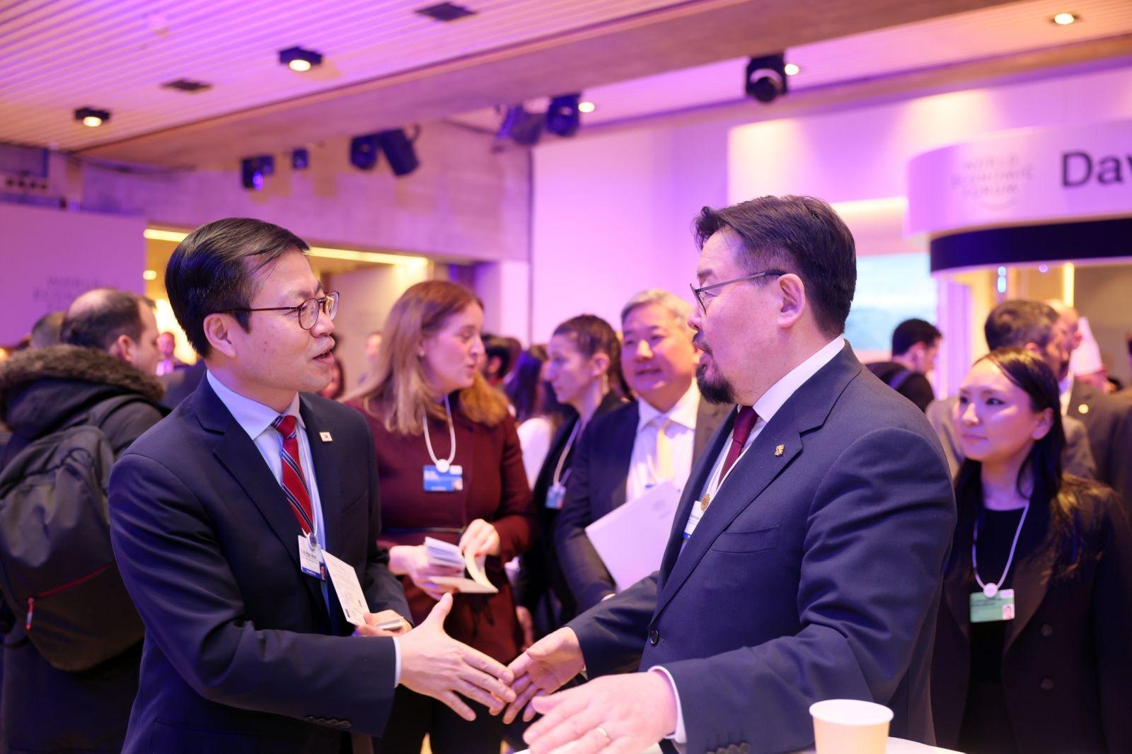 Эхлэл » Томилолт » МОНГОЛ УЛСЫН ЕРӨНХИЙ САЙД Г.ЗАНДАНШАТАР БНСУ-ЫН ХУДАЛДААНЫ САЙД Ё ХАН ГҮ НАР ДАВОС ХОТНОО УУЛЗАВ