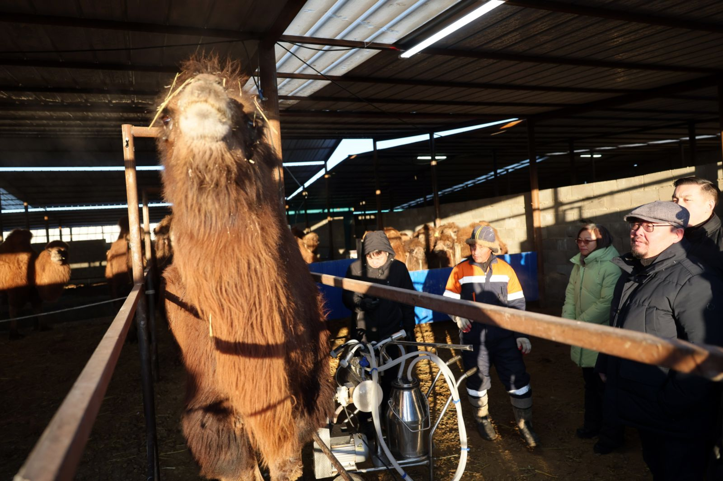Уг фермийг “Солид партнерс групп” компани таван жилийн өмнө нээжээ. Нийт 225 тэмээтэй, 160 нь ингэ. 70 ингэ сааж, өдөрт 140-150 литр сүү авч байна. Нэг ингэнээс 2.5 литр сүү буюу бэлчээрийн тэмээнээс хоёр дахин их сүү авдаг байна. Зуны улиралд дөрвөн хүртэл литр сүү авдаг гэж фермийн удирдлагууд танилцуулав. Зориулалтын саалтуур ашигладаг учраас сүүний гарц нэмэгдэх, цаг хугацаа хэмнэх зэргээр бүтээмжийг өсгөжээ.