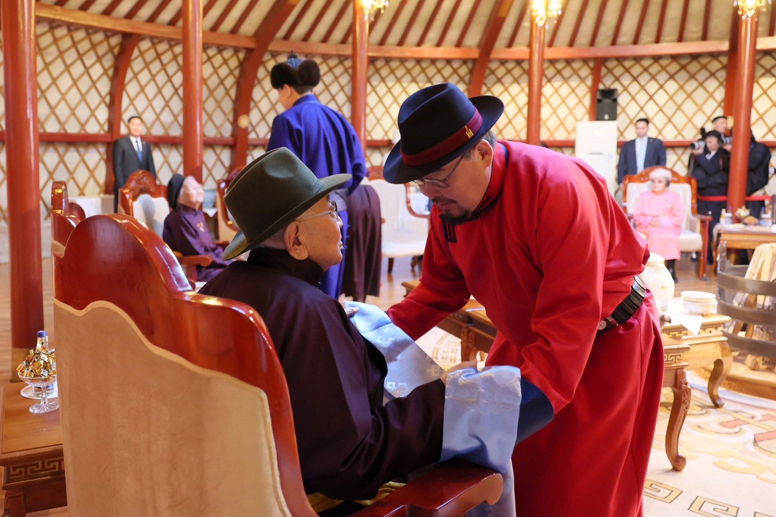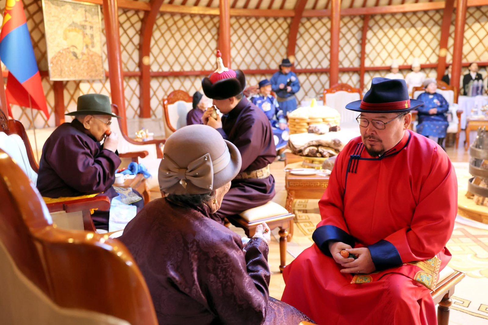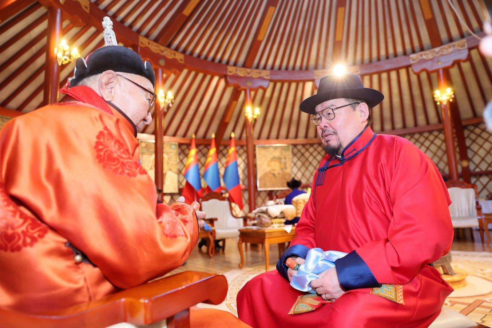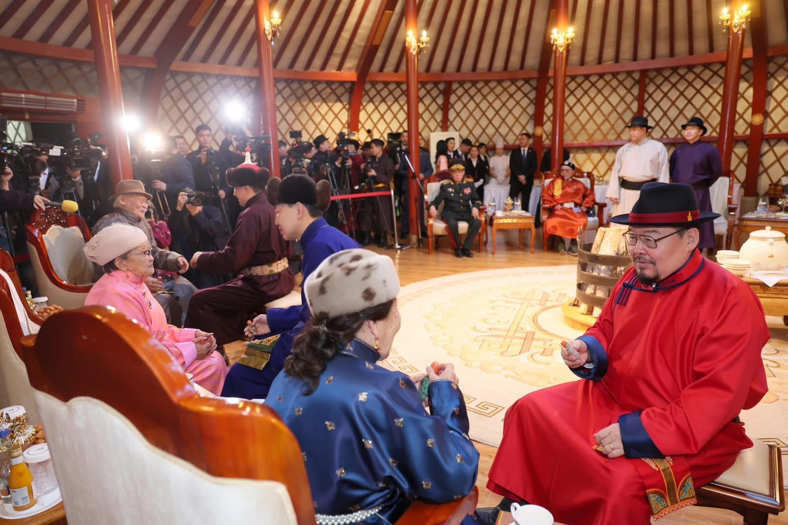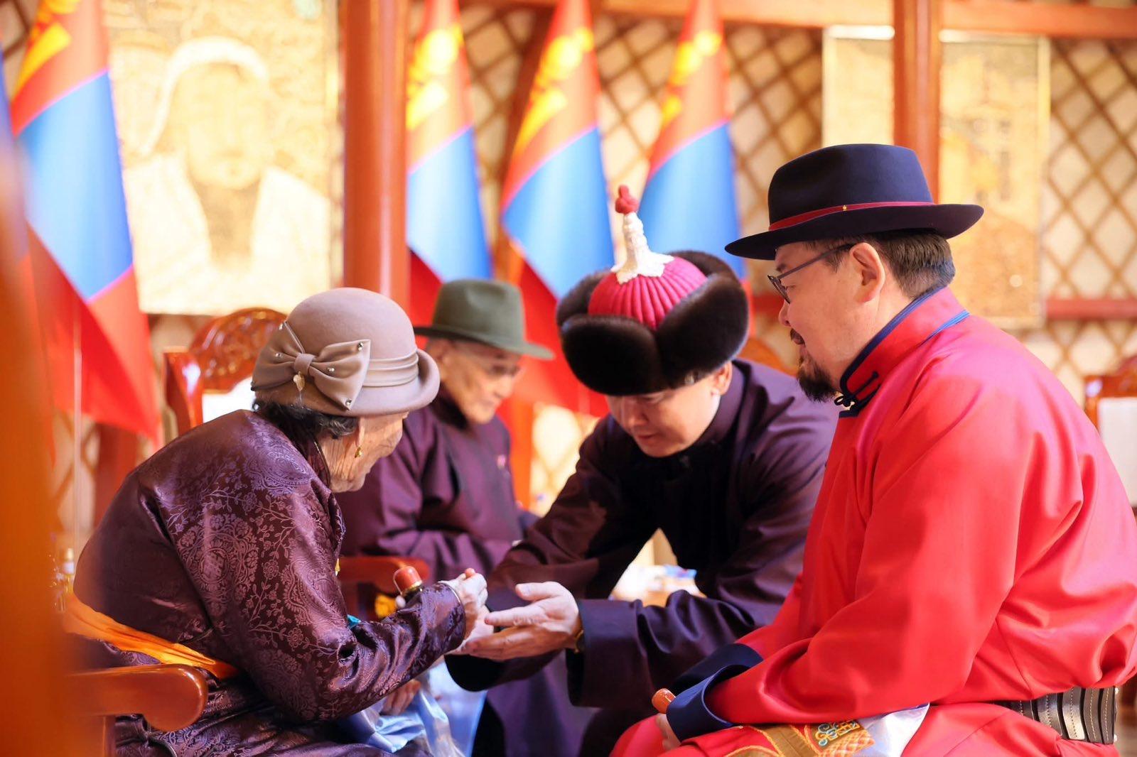 Үүний дараа Монгол Улсын Ерөнхийлөгч Ухнаагийн Хүрэлсүх, Улсын Их Хурлын дарга Ням-Осорын Учрал, Ерөнхий сайд Гомбожавын Занданшатар нар Төрийн ордны хүндэтгэлийн өргөөнд аж үйлдвэр, батлан хамгаалах, боловсрол, соёл урлаг, эрүүл мэнд зэрэг салбарын манлайлал болсон А.Цэрэв, Л.Адъяа, Ш.Гунгаадорж, А.Дулмаа, Ж.Хайдав, Н.Алиасүрэн, Ц.Дашдорж, Д.Должин, Ш.Дэлгэржаргал нарын ахмадуудад хүндэтгэл үзүүлэн золголоо.