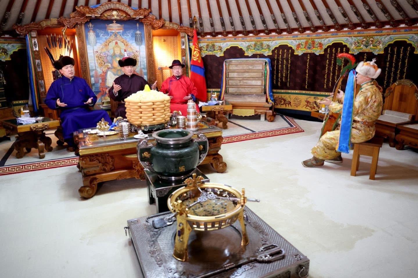 Төрийн ёслол хүндэтгэлийн өргөөнд уламжлал ёсоор төрийн хан хуурыг төрийн хан хуурч, Монгол Улсын Соёлын тэргүүний ажилтан, ерөөлч, магтаалч Ц.Соёл-Эрдэнэ хөглөн татаж цэнгүүлэв. Гал морин жилдээ төр улс төвшин, түмэн олон амгалан жаргалантай байхыг бэлгэдэн "Морины явдал" аялгуу, "Төр түмэндээ өргөх айлтгал магтаал"-ыг хуурдан аялгууллаа.