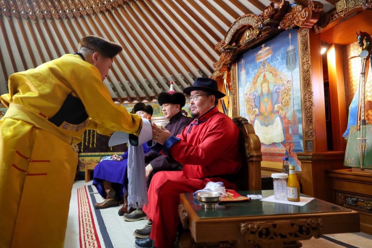 Төрийн золголтод Монголын бурхан шашинтны төв Гандантэгчэнлин хийдийн тэргүүн хамба, лхаарамба Д.Жавзандорж морилон ирж, Монгол Улсын Ерөнхийлөгч, Улсын Их Хурлын дарга, Ерөнхий Сайд нарт бараалхан золгож, сар шинийн мэндийг айлтгасан юм.