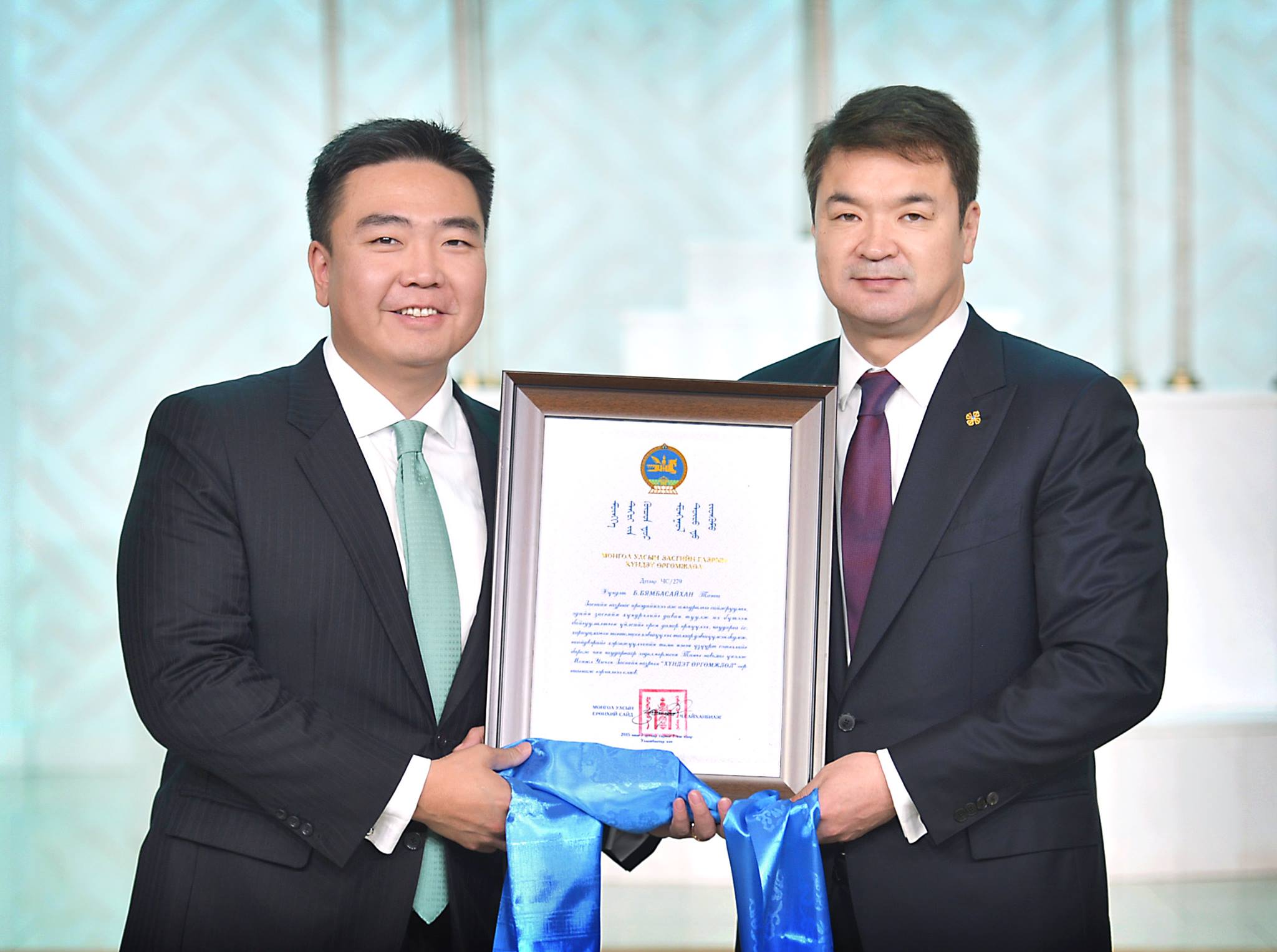 - “Эрдэнэс Монгол” ХХК-ийн гүйцэтгэх захирал Б.Бямбасайхан нарыг Монгол Улсын Засгийн газрын Хүндэт өргөмжлөлөөр шагналаа.