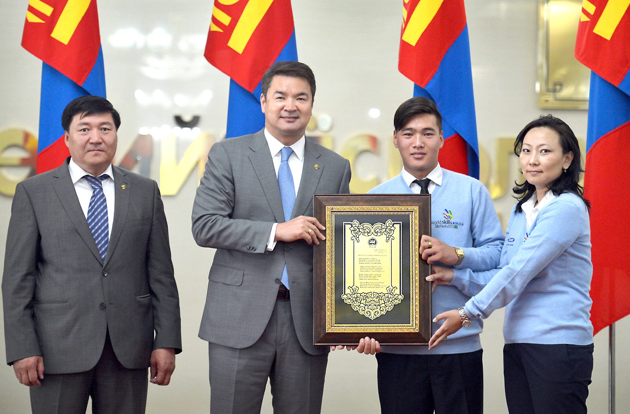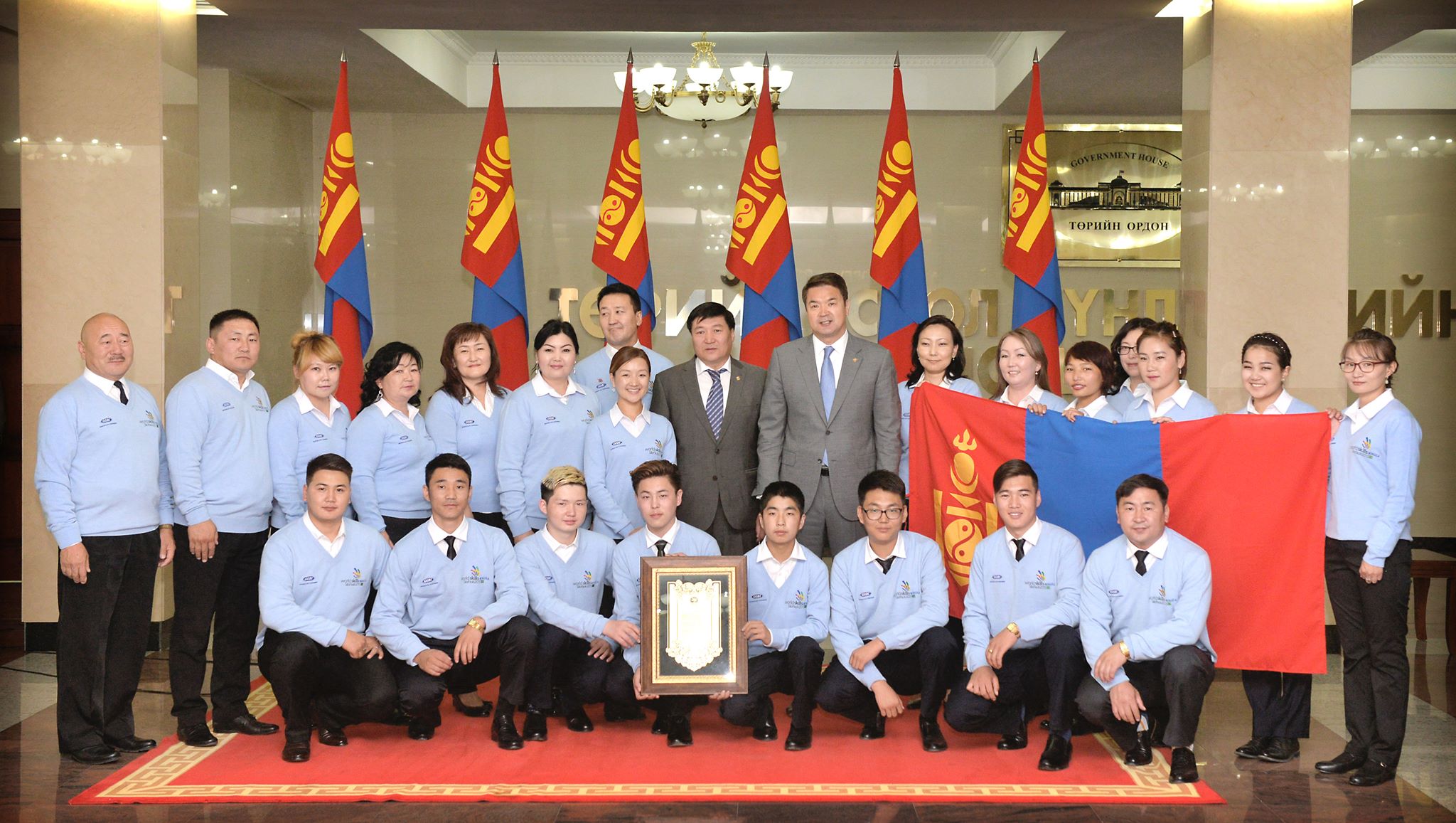 Мэргэжлийн ур чадвараараа дэлхийд өрсөлдөх гэж буй багийнханд Ерөнхий сайд Ч.Сайханбилэг амжилт хүсч, Монгол Улсын төрийн далбаа гардууллаа.
