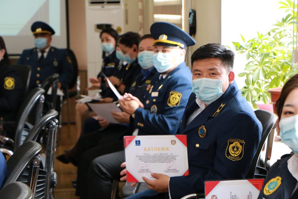 Мэргэжлийн хяналтын байгууллагад 5-33 жил ажиллаж буй МХЕГ-ын 3, НМХГ-ын 16, Буянт-Ухаа боомт дахь Хилийн мэргэжлийн хяналтын албаны 14, Замын-Үүд боомт дахь Хилийн мэргэжлийн хяналтын албаны 6, Сүхбаатар боомт дахь Хилийн мэргэжлийн хяналтын албаны 5, Дорнод аймгийн Мэргэжлийн хяналтын газрын 4, Өмнөговь аймгийн Мэргэжлийн хяналтын газрын 5, нийт 53 эрүүл ахуй халдвар хамгаалал, ургамал хорио цээр, хүнсний чанар стандартын хяналтын улсын байцаагч, жолооч, ариутгагч, лабораторийн ажилтан албан хаагч ийнхүү батламжаа гардан авлаа.