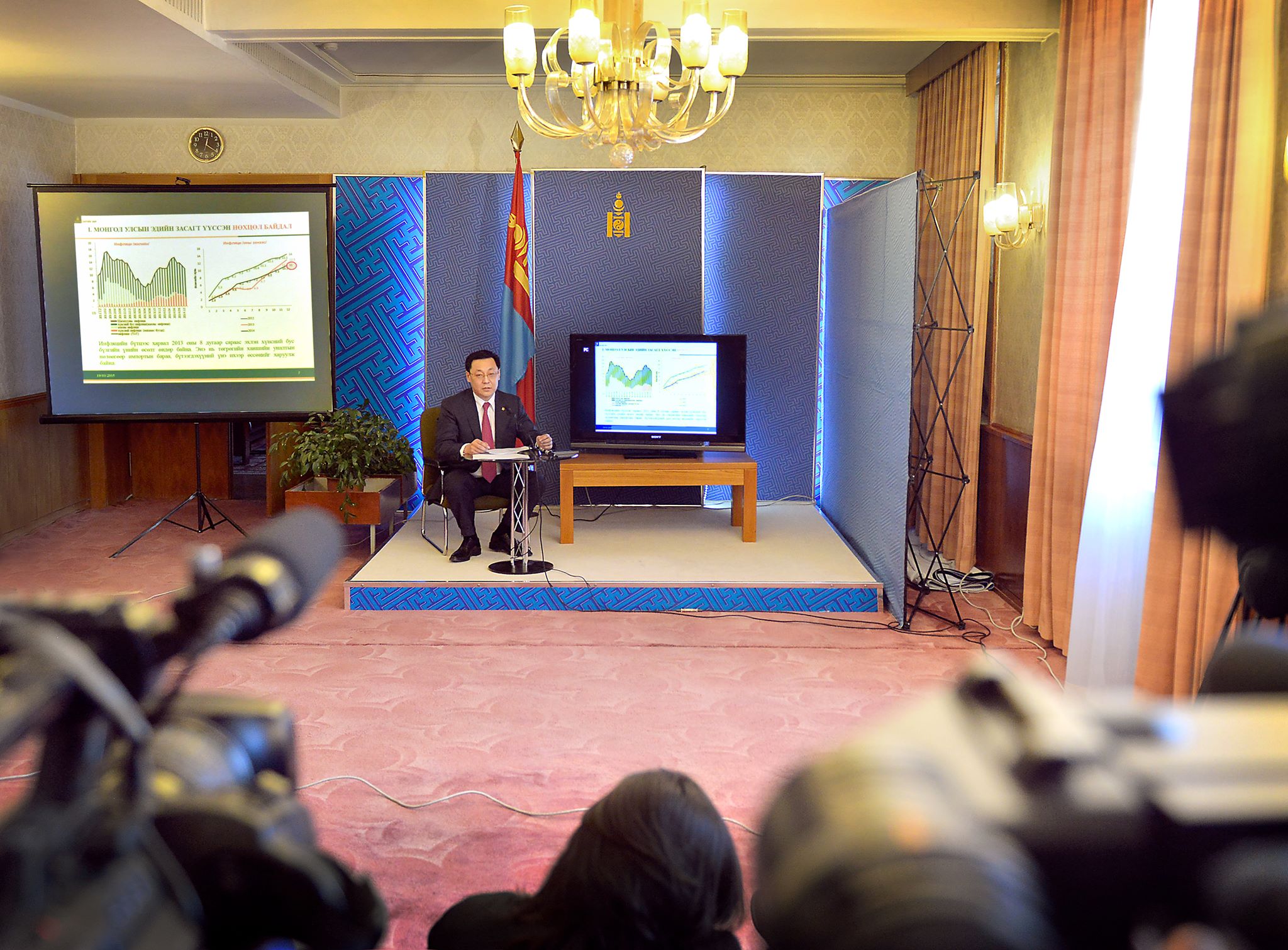 Сангийн сайд Ж.Эрдэнэбат Монгол Улсын эдийн засгийн өнөөгийн нөхцөл байдал, төсөв, өрийн удирдлагын чиглэлээр авч хэрэгжүүлсэн арга хэмжээ, эдийн засгийн хүндрэлээс гарах арга зам, хөтөлбөр хэрэгжүүлснээр хүрэх үр дүнгийн талаар танилцуулж, сэтгүүлчдийн асуултад хариуллаа.
