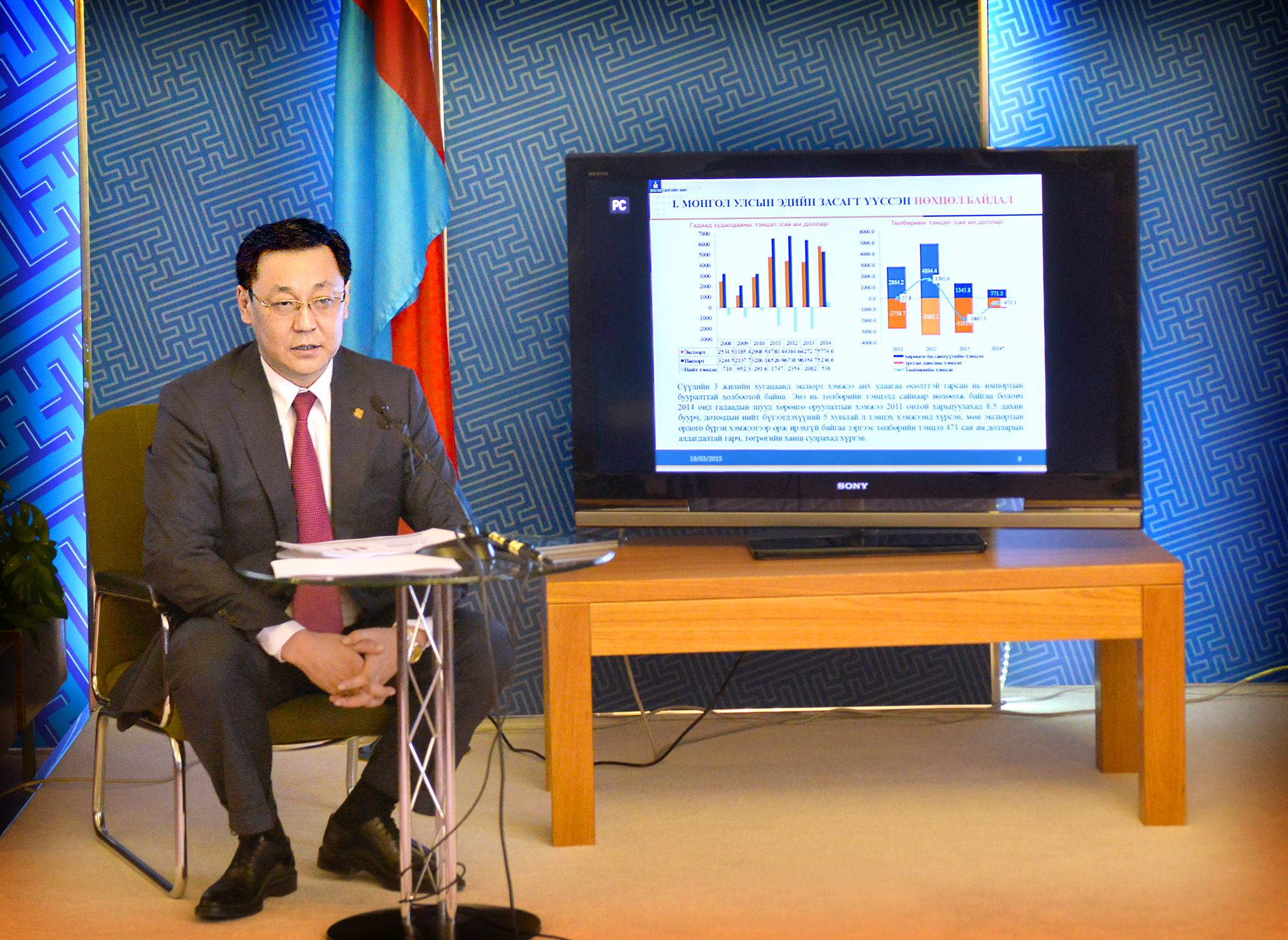 Өнгөрсөн онд гадаадын шууд хөрөнгө оруулалтын хэмжээ 2011 онтой харьцуулахад 8.5 дахин буурч дотоодын нийт бүтээгдэхүүний 5 хувьтай тэнцэх хэмжээнд хүрсэн нь 2009 оны санхүү, эдийн засгийн хямралын үед байсан түвшнээс бага болсон байна. 2014 оны эцэст эдийн засгийн өсөлт саарч, бизнесийн идэвхжил суларсаар байсан тул Монгол Улсын 2015 оны төсөвт тодотгол хийх зайлшгүй шаардлага үүссэн гэлээ. Эдийн засгийн гадаад болон дотоод хүчин зүйл, дэлхийн зах зээл дээрх эрдэс бүтээгдэхүүний үнийн уналт болон экспортын бууралтаас үүдэн 2015 оны батлагдсан төсвийн орлогыг бодитоор дахин төлөвлөх, орлоготойгоо уялдуулан урсгал болон хөрөнгийн зардлыг дахин тооцох, Засгийн газрын бүтцэд гарсан өөрчлөлтийг төсөвт тусгах зорилгоор Засгийн газраас Монгол Улсын 2015 оны төсвийн тухай хуульд нэмэлт, өөрчлөлт оруулах тухай, Нийгмийн даатгалын сангийн 2015 оны төсвийн тухай хуульд өөрчлөлт оруулах тухай, Хүний хөгжил сангийн 2015 оны төсвийн тухай хуульд өөрчлөлт оруулах тухай хуулийн төслийг боловсруулан УИХ-аар батлуулсан гэлээ.