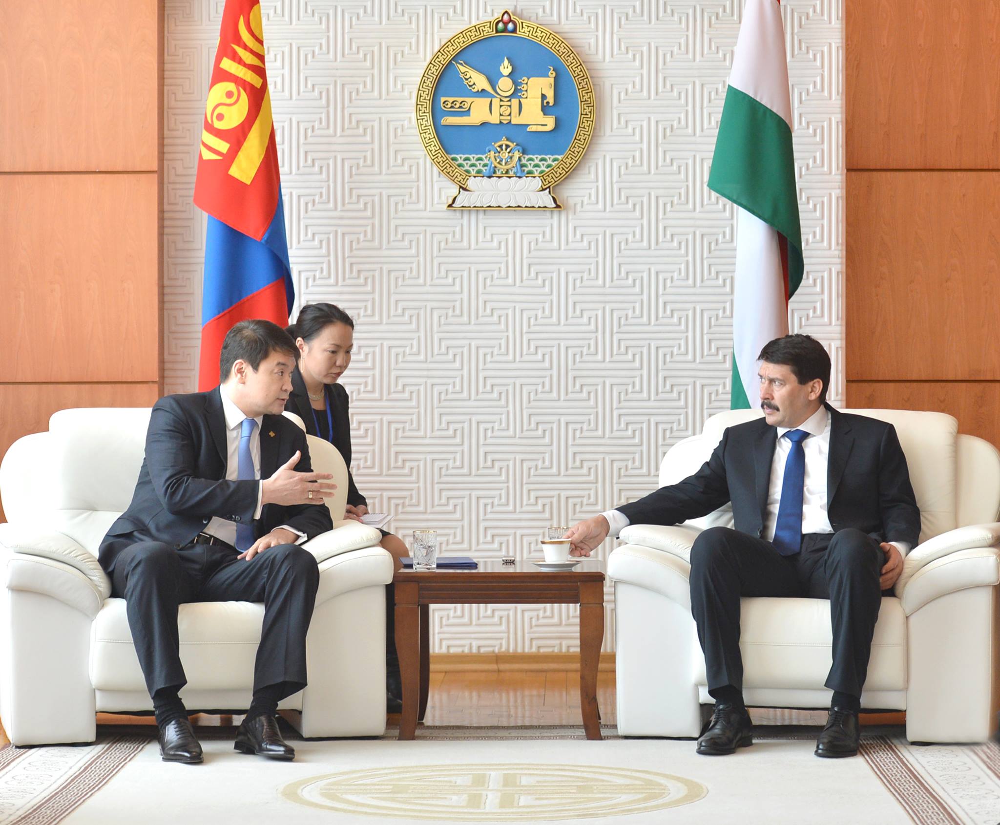 Уулзалтын эхэнд Ерөнхийлөгч Янош Адер Монгол Улсын Ерөнхий сайд Ч.Сайханбилэгтэй уулзаж байгаадаа баяртай байна гээд, Монгол Улсын Ерөнхийлөгчтэй уулзаж, хоёр орны харилцаа, хамтын ажиллагааны олон асуудлаар ярилцаж, санал солилцсоноо хэллээ. Монгол Улсын хүн амын усны хангамж, хөдөө аж ахуй болон аж үйлдвэрийн усны хэрэгцээг хангах, усны нөөц тогтоох, цэвэршүүлэх, дахин ашиглах чиглэлээр хамтран ажиллах боломжтой гэдгээ Ерөнхийлөгч Янош Адер хэллээ.