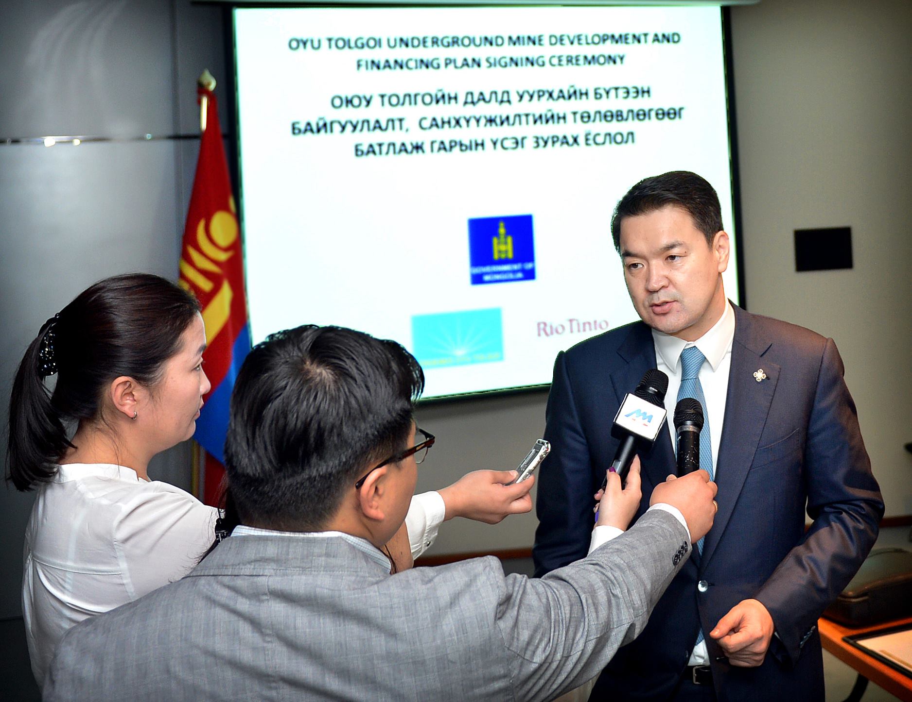 The Government of Mongolia, Erdenes Oyu Tolgoi, Turquoise Hill Resources and Rio Tinto have today signed the “Oyu Tolgoi Underground Mine Development and Financing Plan”, under which they agreed to move forward with developing and exploiting the underground resources of this extraordinary deposit.